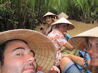No dia seguinte fomos cedinho conhecer o Delta do rio Mekong. O rio é bem escuro mas a água é limpa, ela passa pro um processo pra ficar mais clara e boa pra beber. Paramos em fazendas de plantação de côco, tomei água de côco e compramos balinhas deliciosas. Conhecemos também uma cobra muito amigável e alguns crocodilos que vivem por ali.